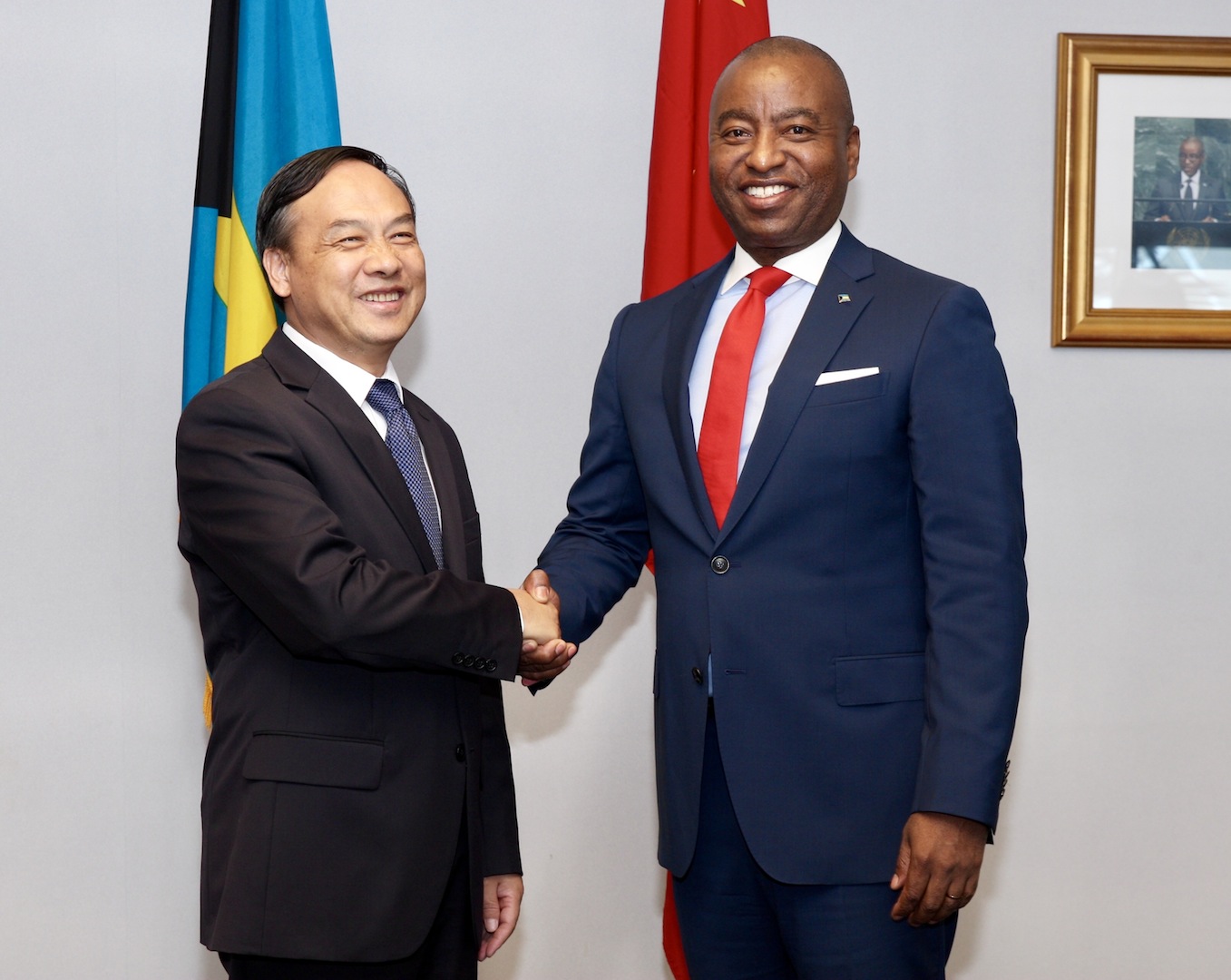 Chinese Ambassador and Minister of Foreign Affairs in Handshake at Signing Ceremony