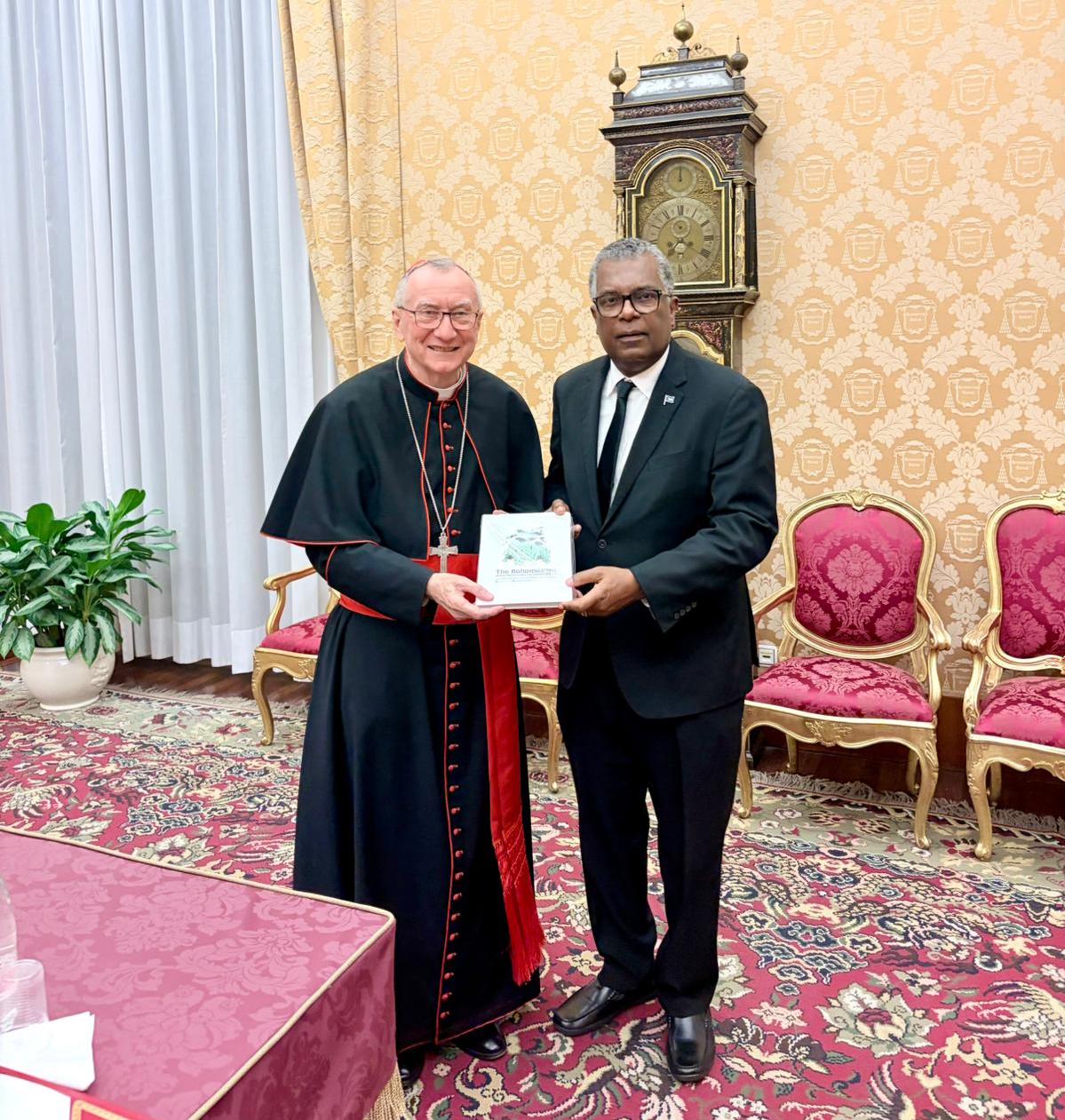 The Honourable Fred Mitchell, Minister of Foreign Affairs of The Bahamas, and His Eminence Cardinal Pietro Parolin, Secretary of State of the Holy See, met yesterday, Thursday 23rd January, for a constructive exchange of views on issues of shared concern, including climate change, peace and security, and sustainable development, with particular attention to their impact on the human condition.