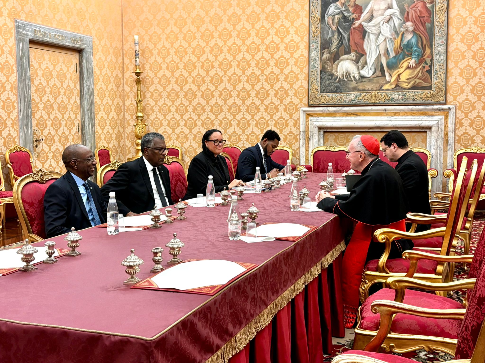 Also joining the meeting were Ambassador Jerusa Ali, Director General and Ambassador Joseph Curry, non-resident Ambassador to the Holy See.