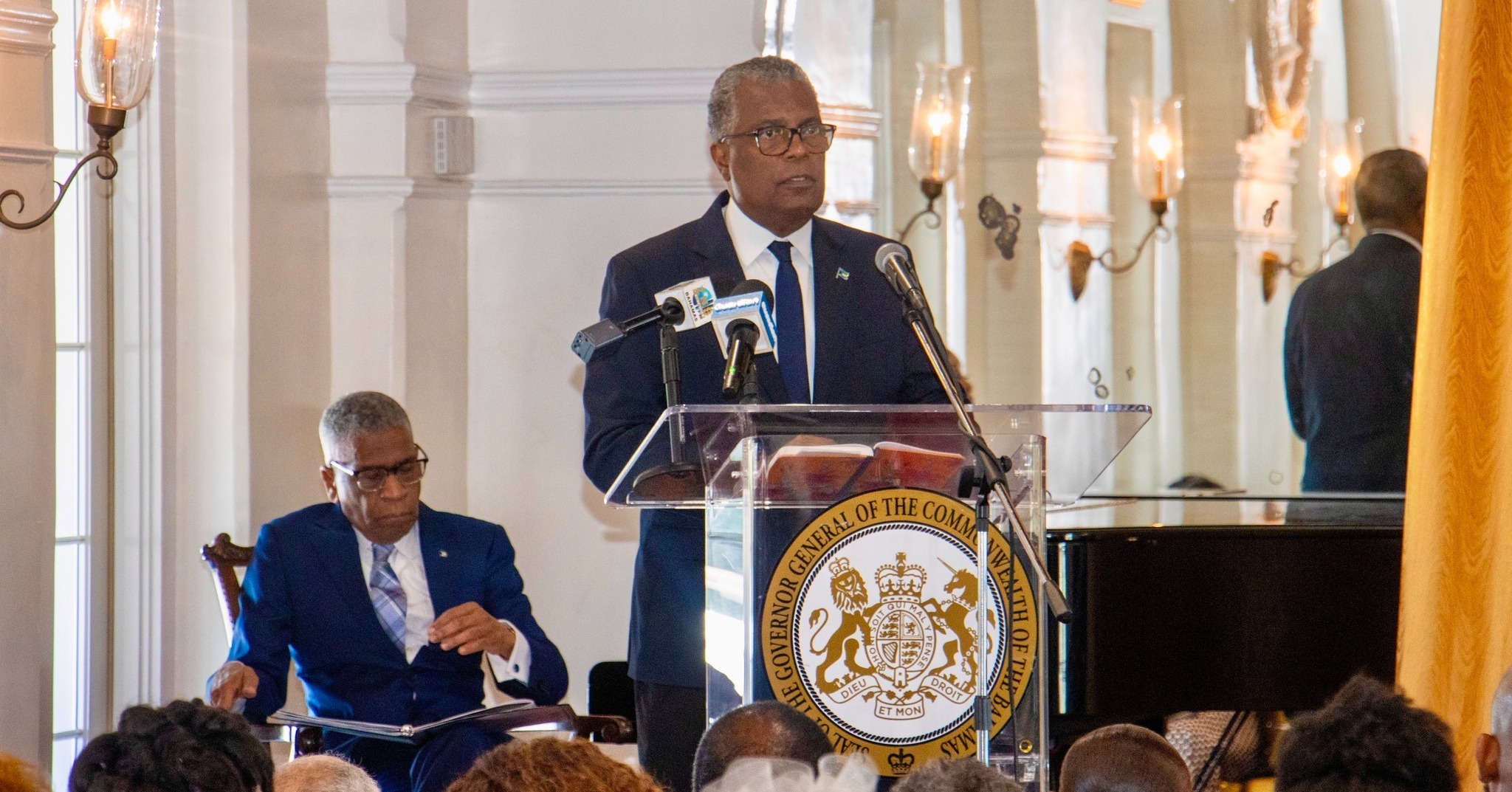 Ministrer Mitchell giving remarks at Government House on 17th November.